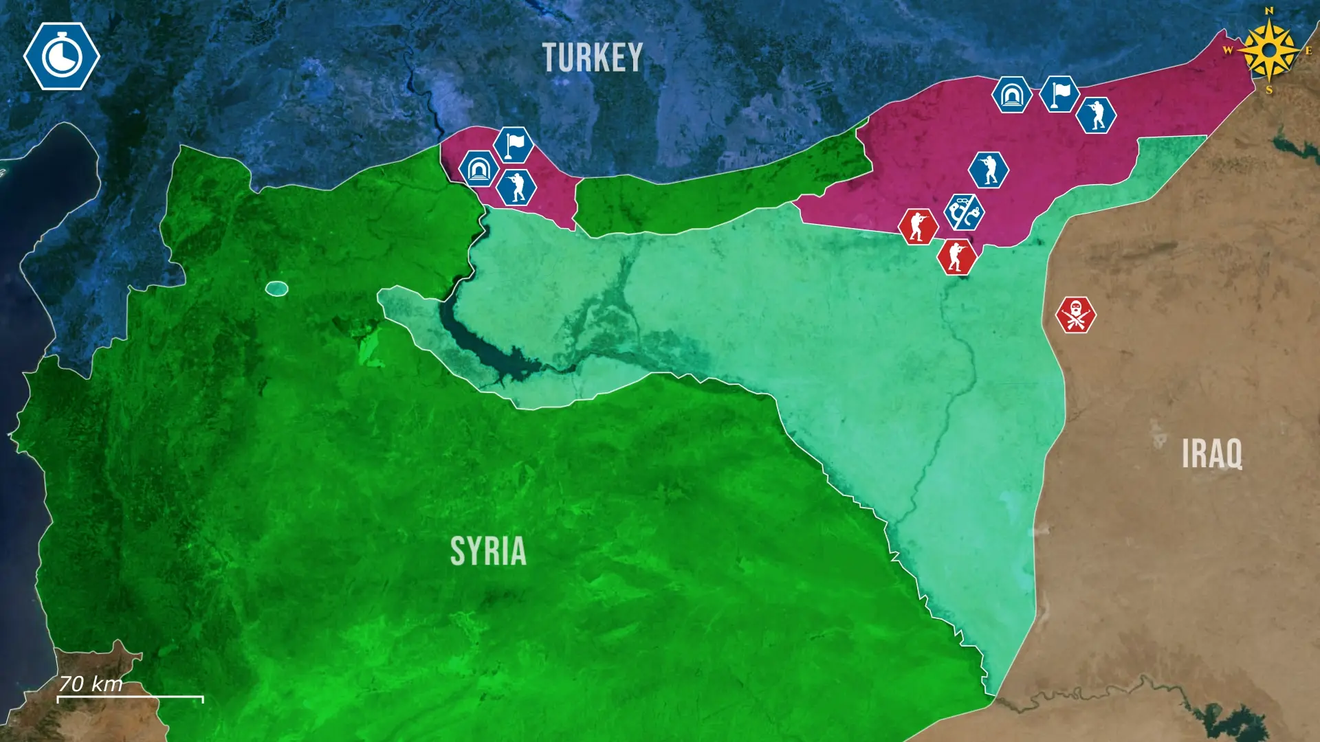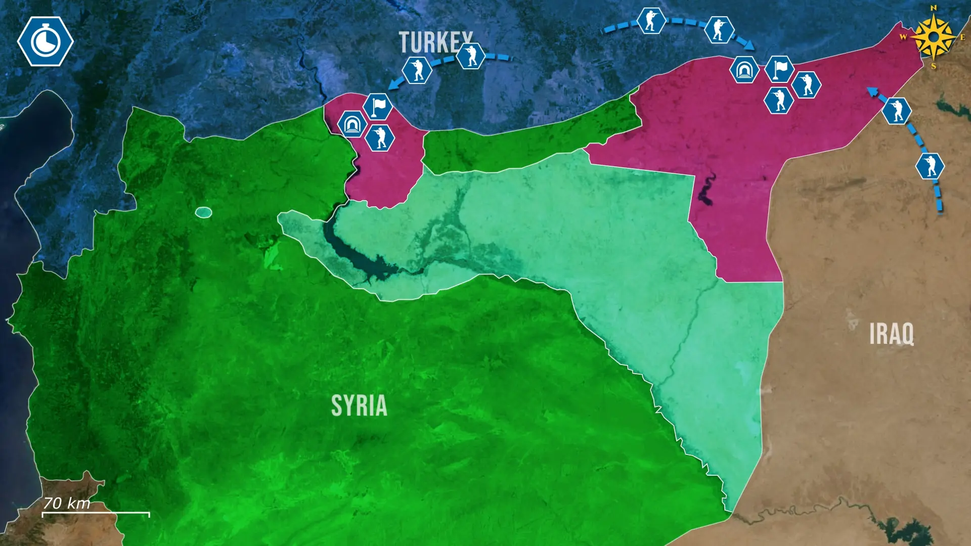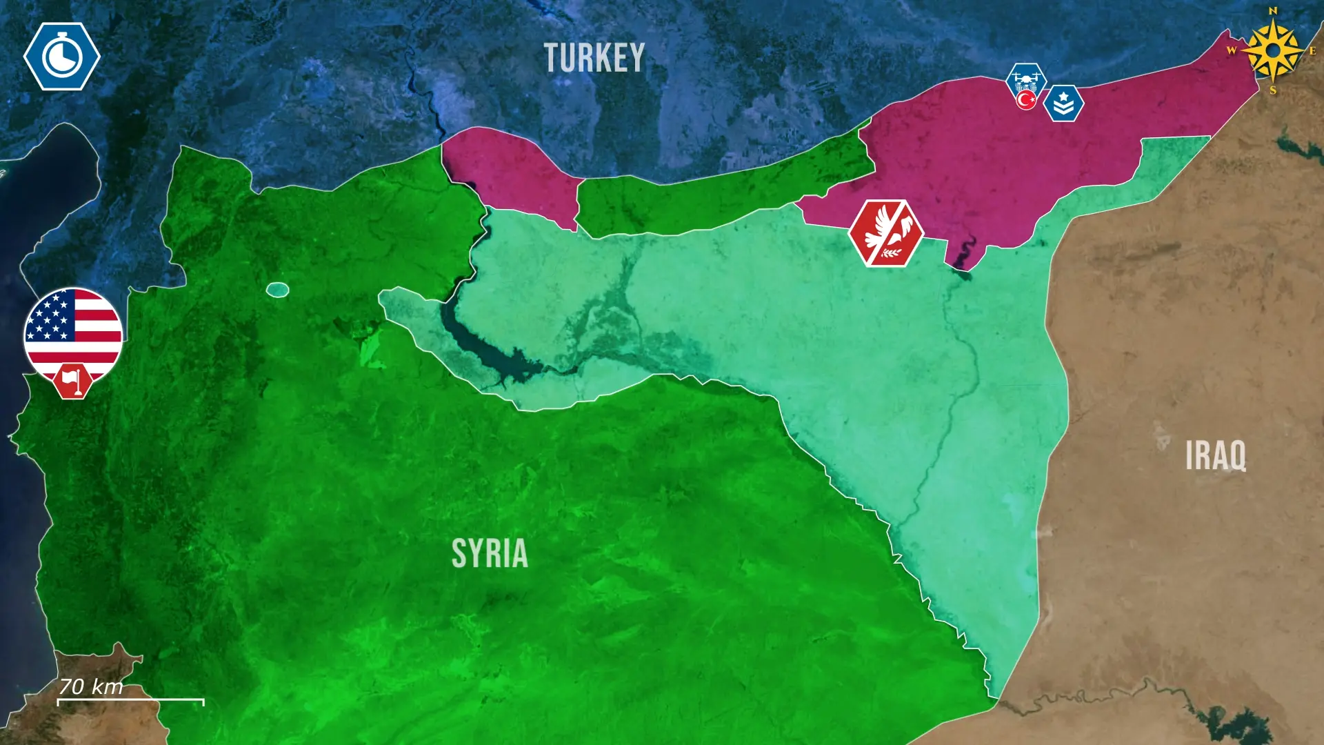 Syrian government forces, supported by large military aid from Turkey, exploited the situation and pushed eastward, and by the 13th, they were advancing toward the Euphrates and tightening pressure on Kurdish lines.