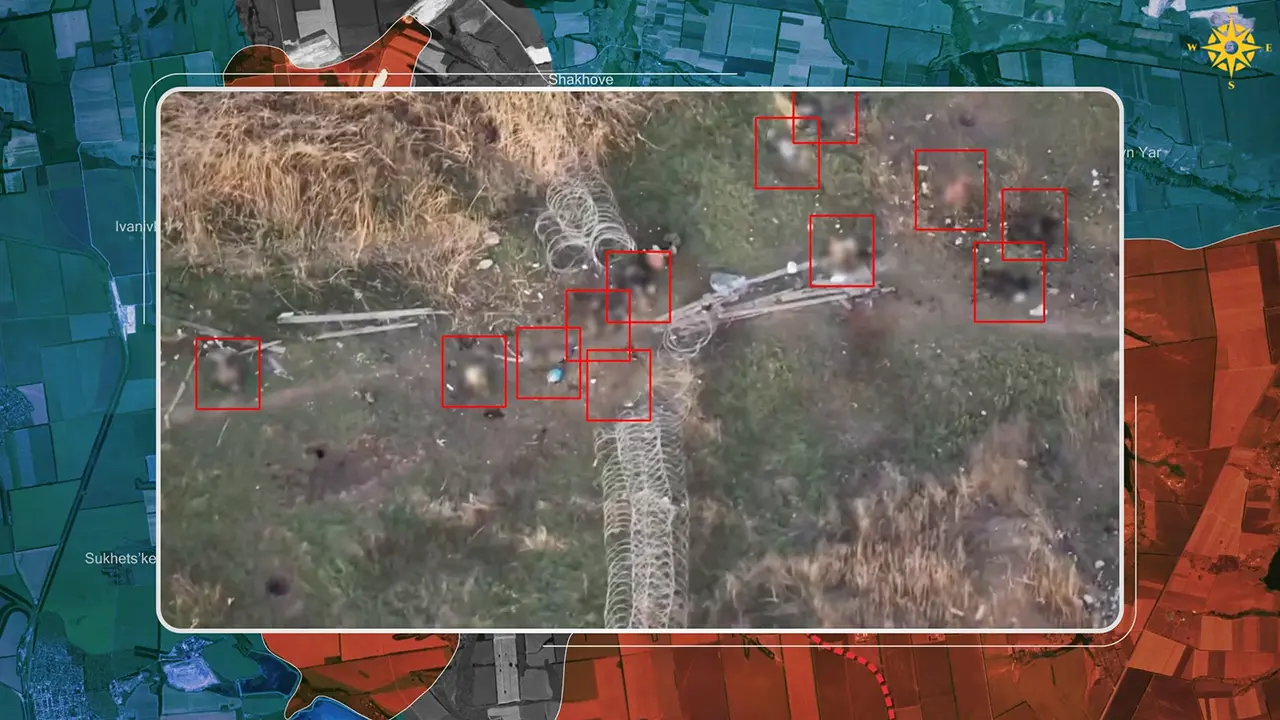 Others were piled up in the anti-tank ditches, as Russian assault troops tried to crawl through them, with Ukrainian drones catching them in the process. One by one, they were cut down as explosions tore through the wire barriers. When the smoke cleared, the field had turned into a lifeless maze of corpses, fragments, and twisted barricades.