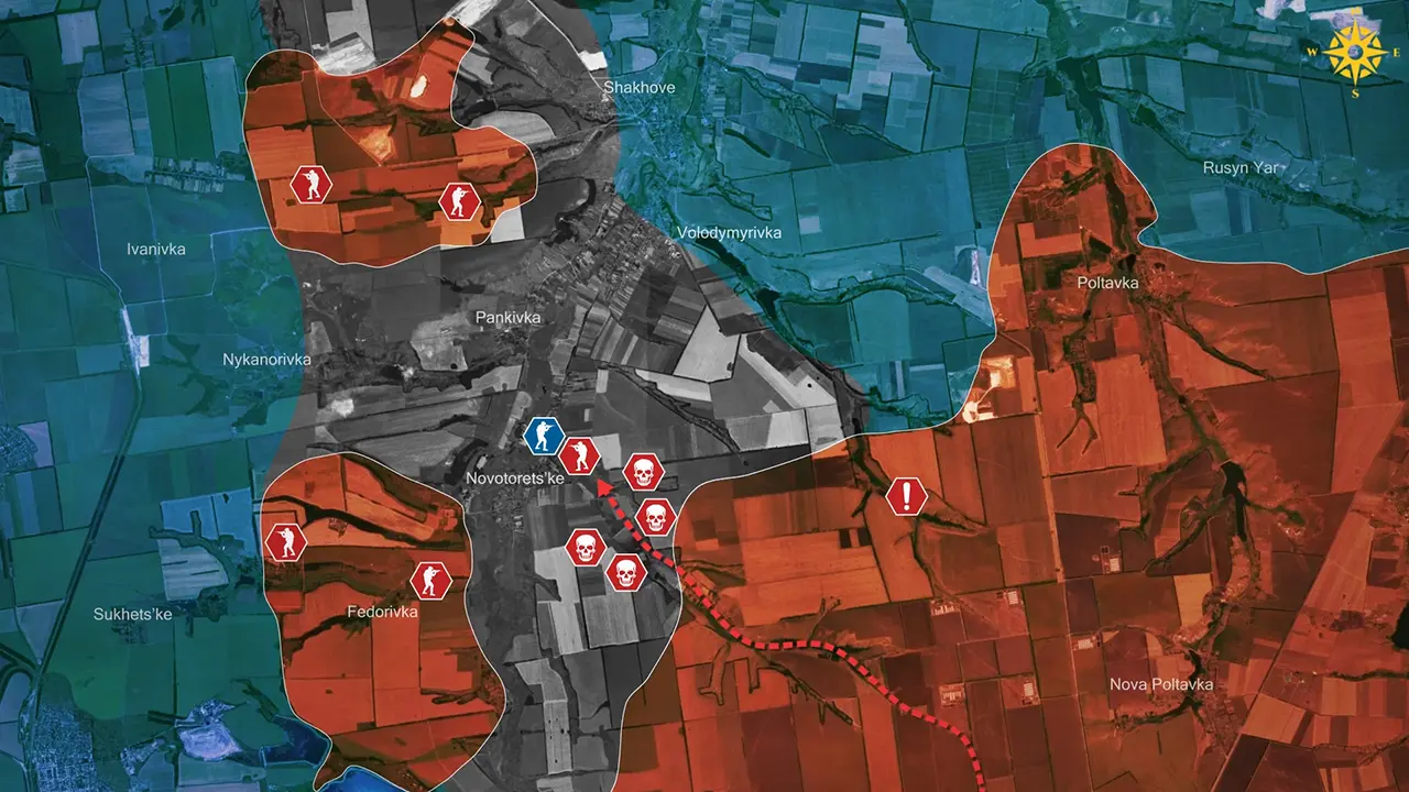 Here, wave after wave of desperate Russian attacks were crushed by the Ukrainian defense while trying to reach their encircled forces near Dobropillia. As the fields and trenches were covered with dead Russians, their commanders decided to blow up a poisonous pipeline and create a gruesome scene of self-destruction.