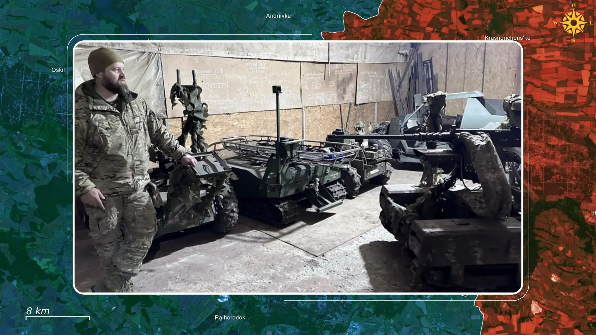 Such operations are sustained by an efficient, decentralized system, with Ukrainian drones remotely controlled from bunkers or armored vehicles and operating in close coordination with aerial drones that scout, jam, and strike targets. With operators positioned behind the contact line and maintenance handled in small frontline workshops embedded within brigades, where technicians repair tracks, sensors, and electronics within hours using mobile tools and 3D-printed components.