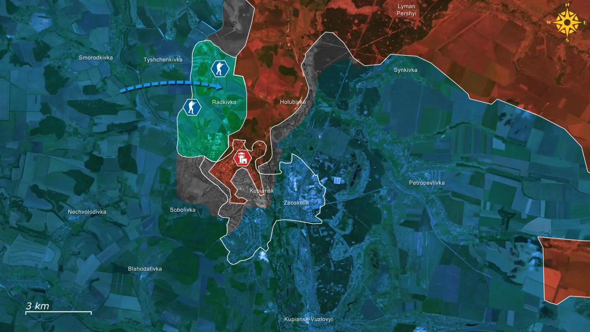 In order to mitigate the risk of Kupiansk being fully seized and Ukrainian forces east of the Oskil River becoming isolated, the Ukrainian command has established the Joint Forces Group under the leadership of Major General Mykhailo Drapatyi. In the ranks of this new corps, Ukraine has its most combat-ready and motivated fighters, whose task is to clear the city. Ukraine's strategy emphasizes agility and attrition to hold the line; that is why they launch localized counterattacks to push back the Russians and expand the grey zone, disallowing the attackers to dig in inside Kupiansk.