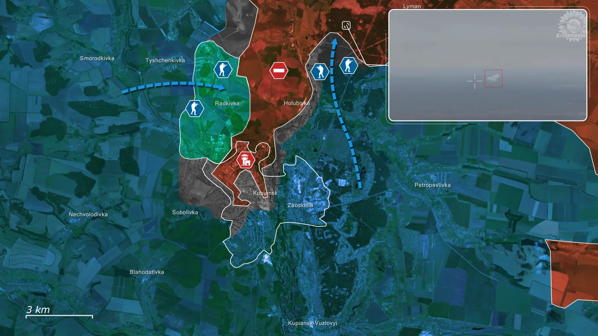 Firstly, an operation is currently underway to eliminate Russian strongholds in the northern part of the city. Here, the goal is to take these positions back, as these are now cut off from their main supplies and reinforcements, and liberating them would allow the Ukrainians to completely cut the Russian logistics and further inflow of troops into Kupiansk.