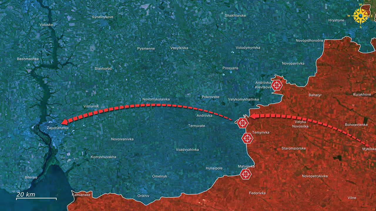 The main Russian goal in this sector is to secure ground inside the Dnipropetrovsk region that can be used as bargaining leverage in any future negotiations and, if possible, to press westward toward Zaporizhia city from the east. Securing villages and staging areas across the administrative border would let Russian leadership claim forward momentum and create lines on the map that could be traded politically, while also opening avenues for follow-on mechanized advances if Ukrainian lines collapse.