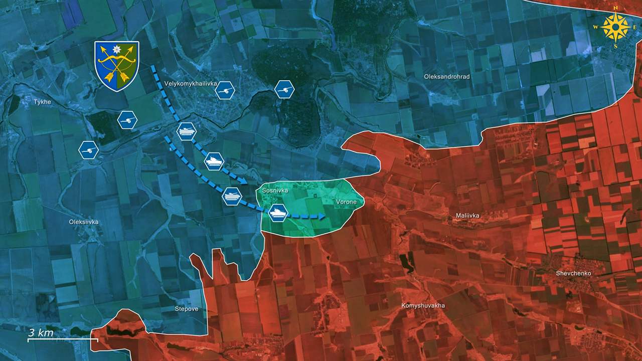 Then, mechanized thrusts led by the 23rd Mechanized Brigade together with elements of several assault battalions go on isolate enemy vanguards and cleared the path for follow-up assaults. Lastly, Ukrainian infantry began a clearing operation to consolidate the newly gained terrain, and prevent assaults from behind.