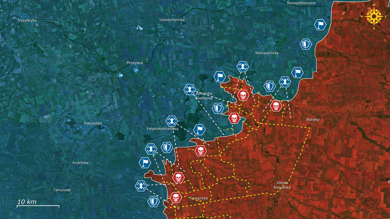 Here, Ukrainian counterattacks have begun to blunt a slow Russian push and are now forcing a rethink of Moscow’s east-to-west axis. The fighting is concentrated around two core battles that together will decide whether Russian gains translate into an operational breakthrough or Ukrainians can form a shield defending the open fields of a new Oblast.