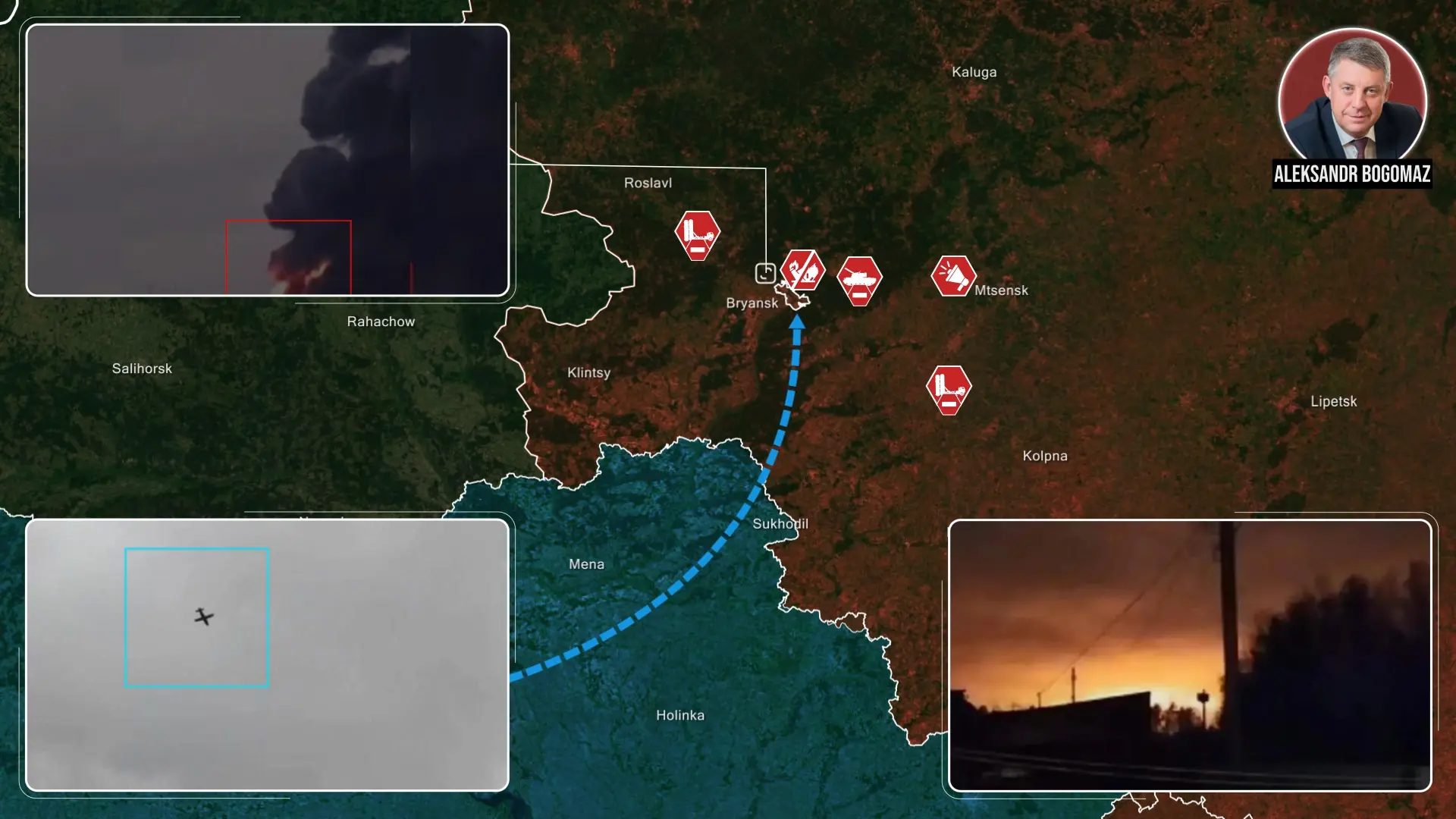 The main target was the Bryansk Chemical Plant, one of the cornerstones of Russia’s military-industrial complex, producing propellants, explosives, and components for Kh-59 and other missiles used against Ukrainian cities. Russian monitoring channels issued air raid alerts, warning of Storm Shadow cruise missiles inbound, and local officials initially claimed all had been shot down. Minutes later, videos flooded social media showing fireballs over the region and multiple explosions rocking the industrial area. The plant’s ammunition depot reportedly detonated after impact, and production at the site is now irreversibly halted. Bryansk Governor Aleksandr Bogomaz scrambled to control the narrative, insisting air defense forces destroyed six aircraft-type drones, but the published footage told another story: precision strikes hitting deep into the industrial zone, with secondary explosions lasting for hours.
