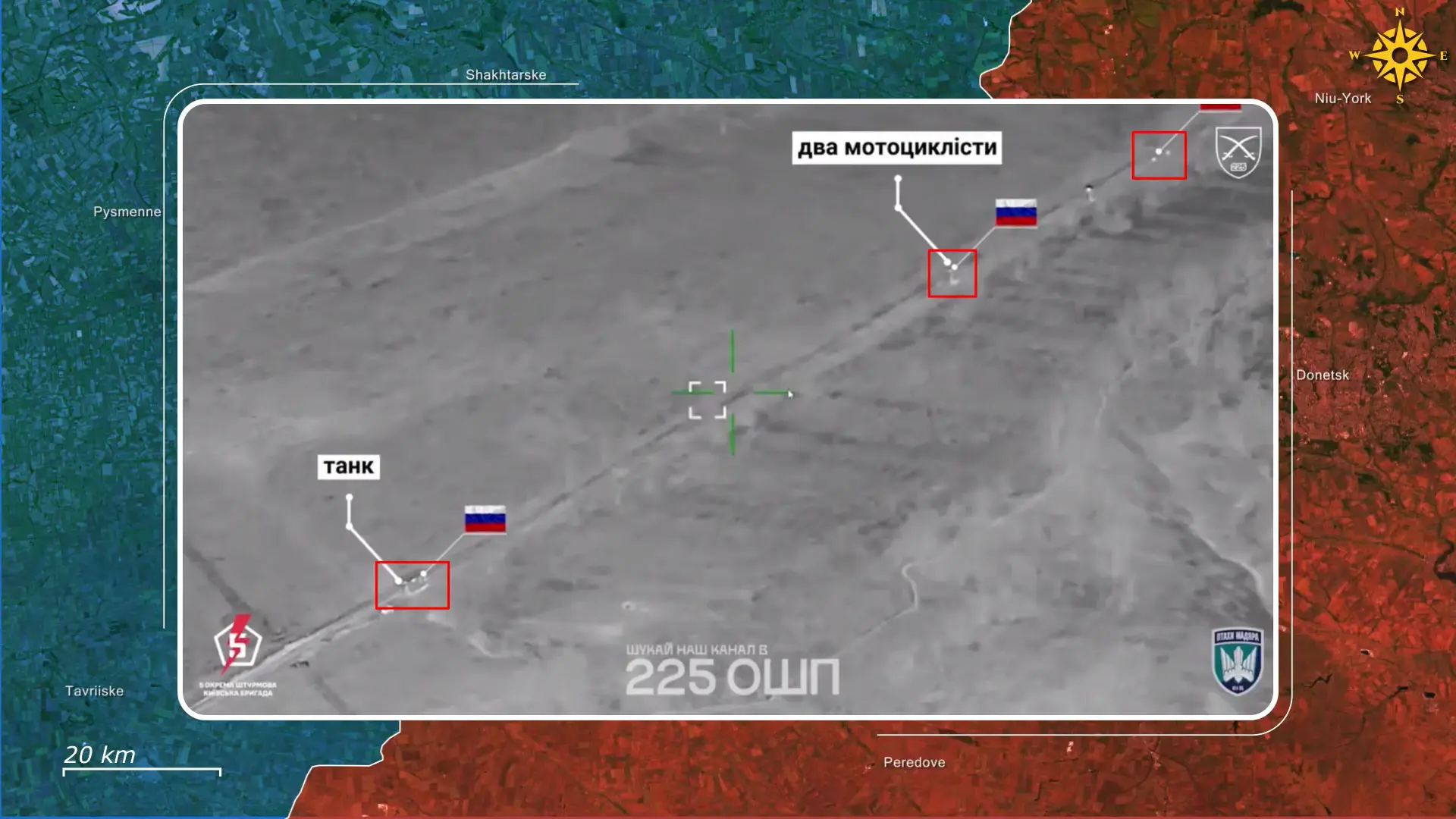 Im Raum Pokrowsk versuchten russische Truppen einen Vorstoß auf Hryschyne. Gefechtsaufnahmen dokumentieren die Abwehr eines Angriffs durch 13 russische Motorräder. Diese wurden aufgrund ihrer Agilität eingesetzt, um sich rasch der Ortschaft zu nähern und die Expositionszeit gegenüber Drohnen zu minimieren. Die ukrainischen Verteidiger zerstörten jedoch neun Motorräder bereits in der Annäherungsphase und neutralisierten die verbliebenen vier innerhalb des Dorfes. Die überlebenden Soldaten wurden anschließend durch FPV-Drohnen bekämpft, was zur vollständigen Aufreibung der Angriffsgruppe führte.