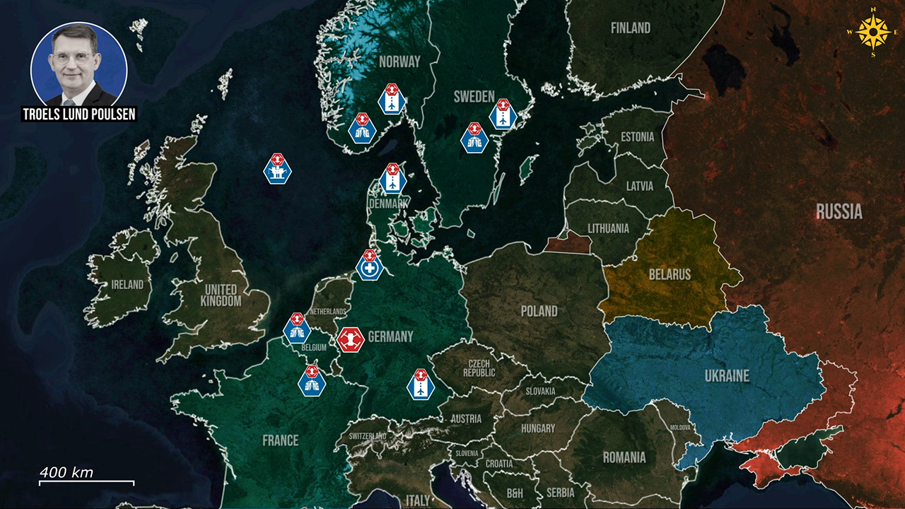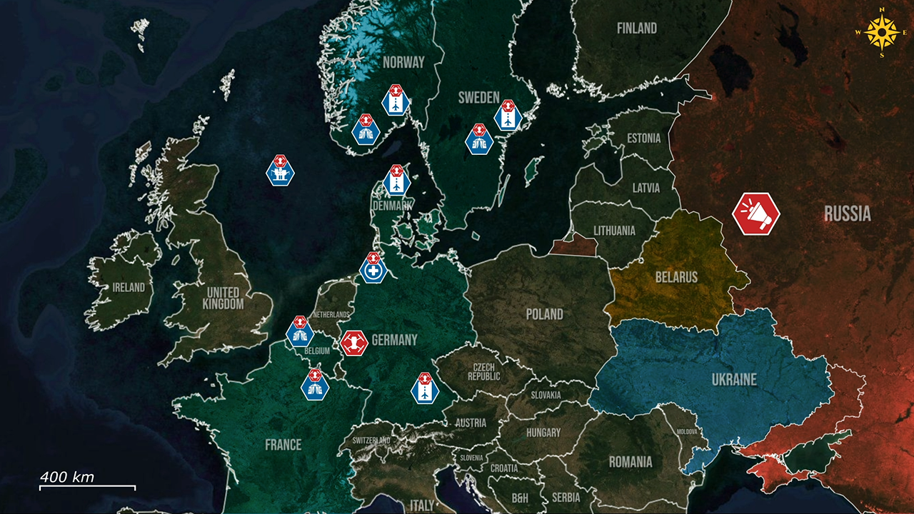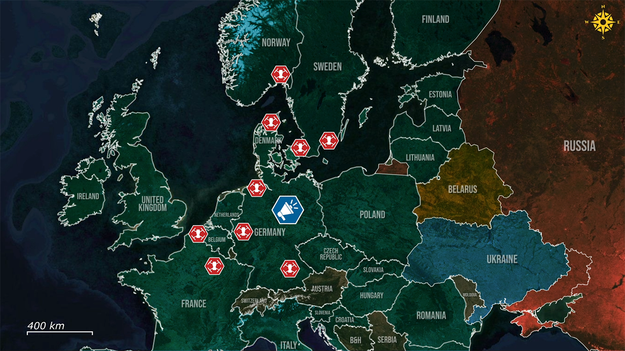 Dinamarca, donde pronto se producirán componentes para los misiles Flamingo ucranianos, ha registrado repetidos incidentes. Alemania y Bélgica, que albergan importantes centros logísticos y de entrenamiento, también han sido objeto de estas incursiones.