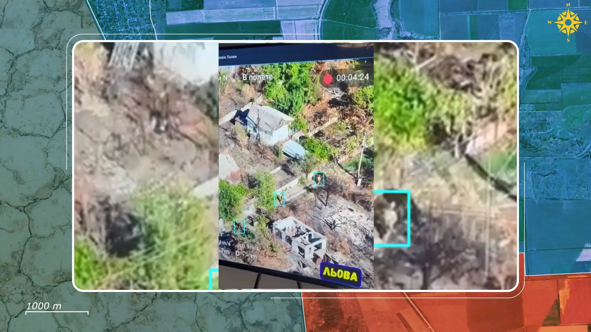 Otras grabaciones del pueblo muestran a soldados ucranianos asaltando casas, mientras sus comandantes coordinan y dirigen de cerca sus acciones, supervisando sus movimientos en tiempo real a través de un dron de reconocimiento. Enviados desde la fortaleza en la colina, los ucranianos llevan a cabo operaciones de limpieza para impedir que los rusos acumulen fuerzas suficientes tras infiltrarse en el pueblo.