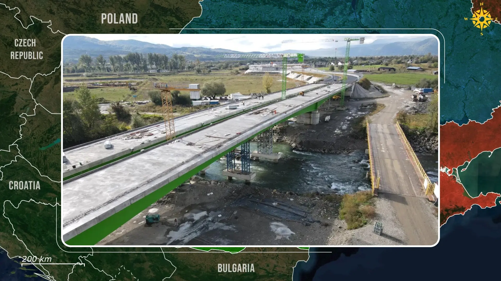 La pieza central es el nuevo puente carretero de 261 metros sobre el río Tisa, que conecta Sighetu Marmației y Bila Tserkva, cuya construcción ya está completada en un 90 por ciento y cuya apertura está prevista para 2026.
