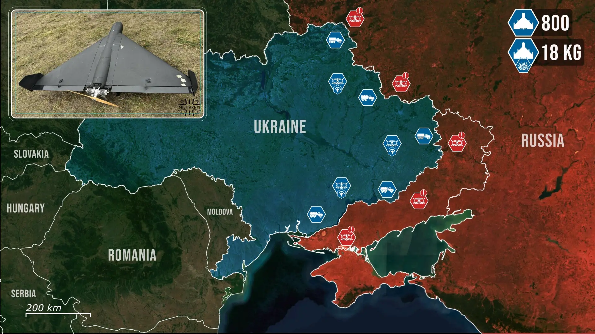 Recientemente, Ucrania llevó a cabo un ataque coordinado de siete días de duración en el interior de Rusia; durante esta operación, se observaron drones inusuales en los puertos clave de exportación de petróleo rusos, Ust-Luga y Primorsk. El diseño exterior de estos drones guardaba similitud con los drones kamikaze de largo alcance Shahed, utilizados masivamente por Rusia contra Ucrania.