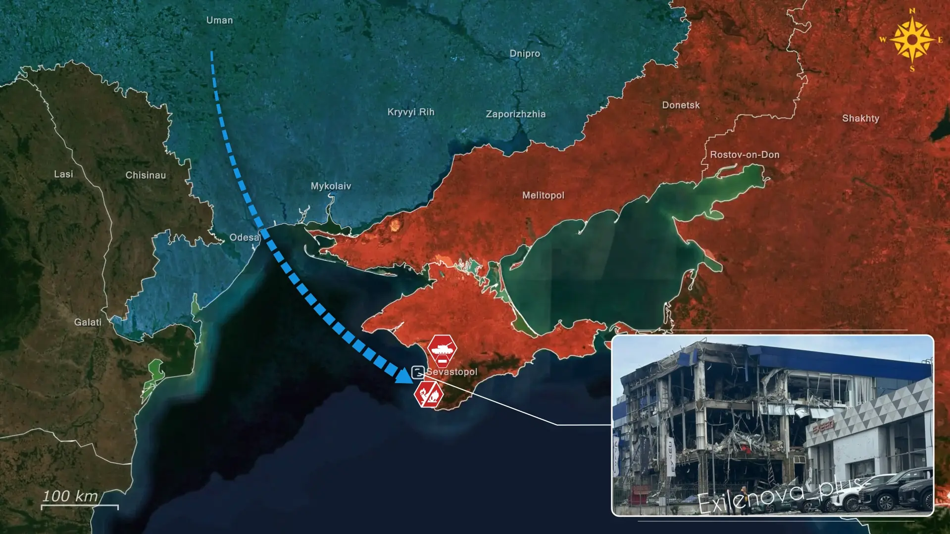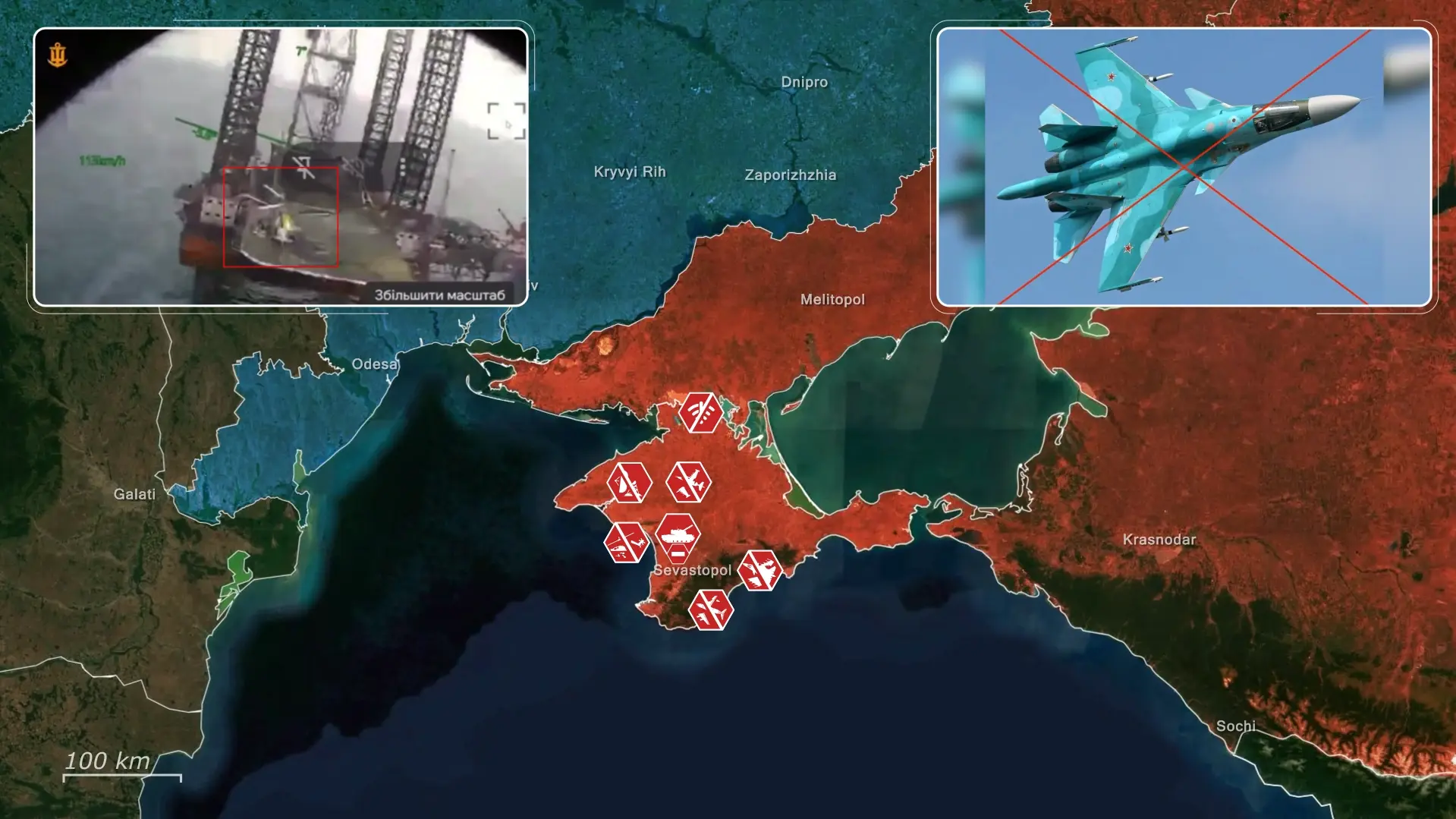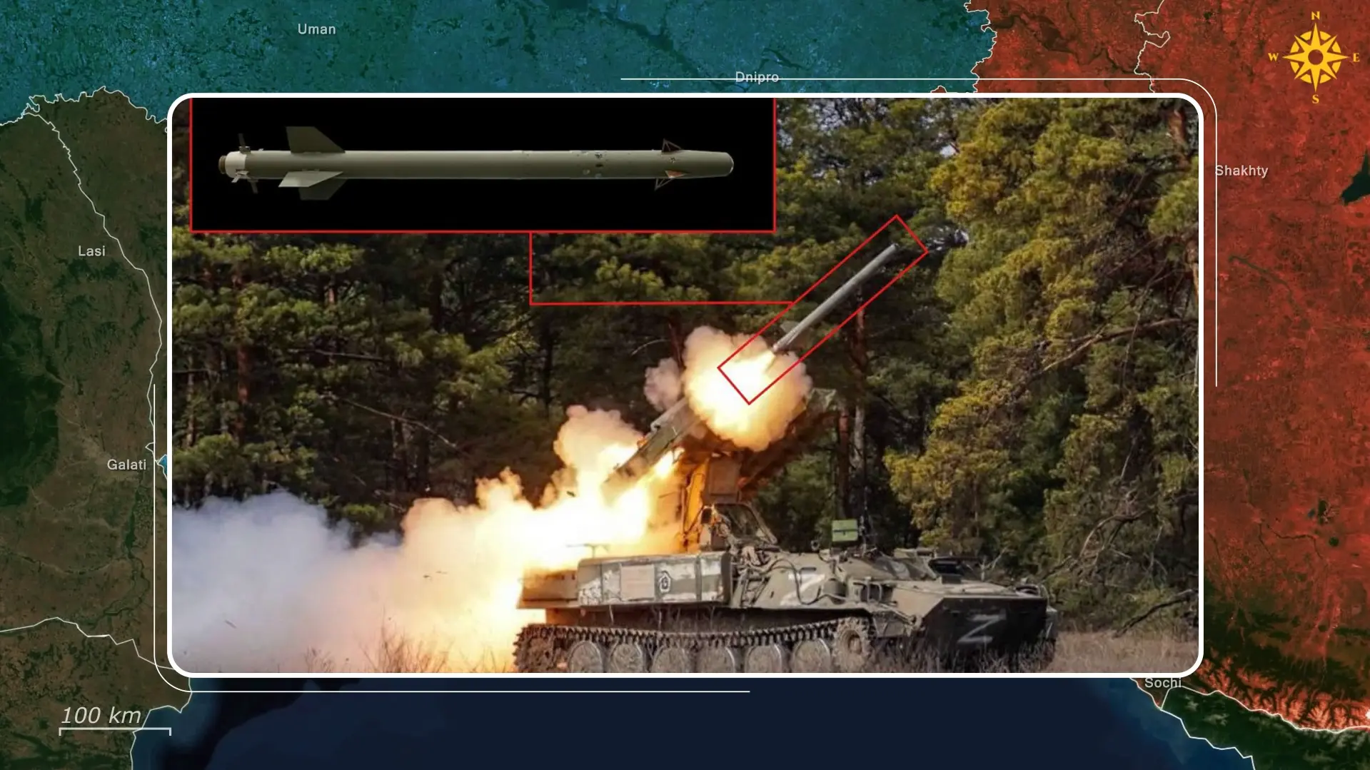 Simultáneamente, los misiles de nueva producción se envían directamente desde las fábricas al frente, lo que indica que no quedan reservas. Rusia también se ve obligada a reposicionar constantemente sus activos de defensa restantes en un intento de reaccionar a los ataques ucranianos, llegando incluso a desplegar un sistema improvisado en Oriol, consistente en un lanzador montado sobre un camión equipado con misiles aire-aire.