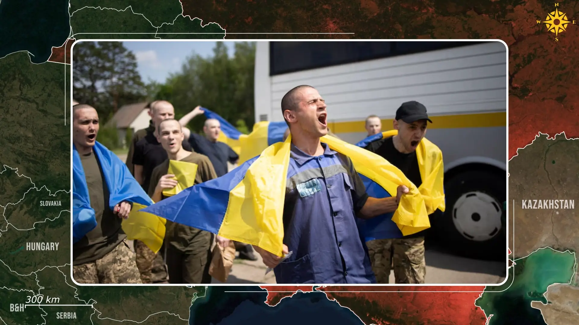 El marcado contraste entre ucranianos y rusos subraya la división, ya que los prisioneros ucranianos se ven llorando de alivio, llamando a familiares, cantando el himno nacional y abrazando la libertad tras ser intercambiados.