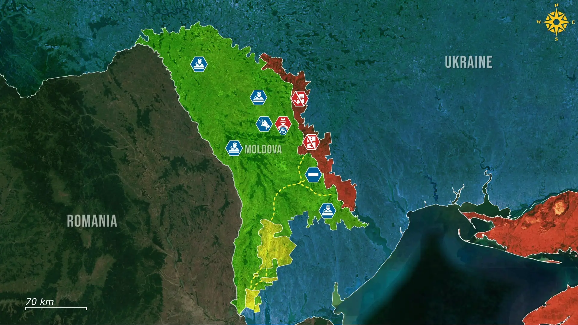 Al mismo tiempo, el gobierno moldavo está reforzando el control dentro del país al someter las regiones autónomas más firmemente a la autoridad central, reduciendo el margen de influencia rusa. Esta consolidación interna está estrechamente vinculada al bloqueo, porque cortar el acceso externo de Transnistria también corta una fuente clave de apoyo político y económico para actores alineados con Rusia dentro de Moldavia. Sin rutas terrestres, acceso aéreo ni flujos comerciales legales, Rusia ya no puede financiar, abastecer o coordinar presión a través de grupos locales y aliados. Esto debilita las redes de influencia que dependían del apoyo transfronterizo y facilita que el gobierno central afirme su control sobre las regiones autónomas. Cualquier intento secreto de mover suministros o influir enfrenta ahora un alto riesgo de ser descubierto, mientras que el apoyo militar abierto no es posible sin cruzar territorio ucraniano o moldavo.