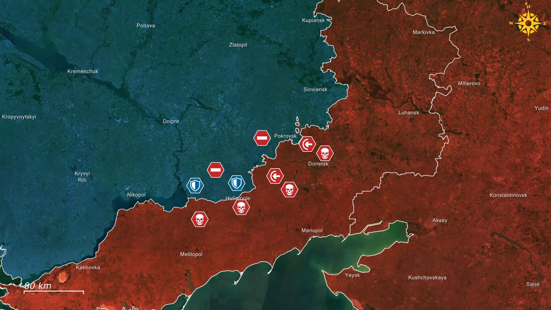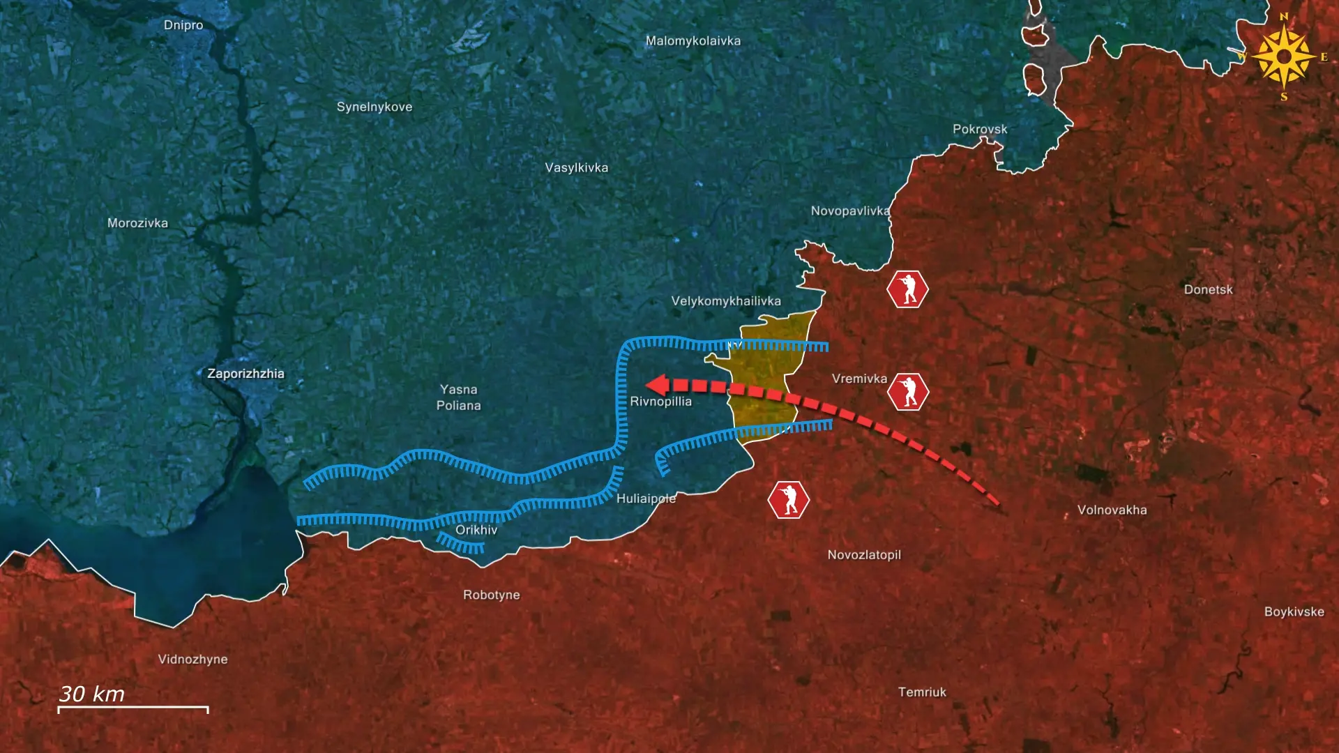 Leur objectif à court terme est de percer les principales défenses ukrainiennes le long de la forêt et de la rivière Vovcha, puis de prendre le petit village de Pokrovske, qui sert de nœud logistique clé. Il est situé sur l’autoroute N15, ce qui permettrait aux Russes d’assurer une voie d’approvisionnement pour leur progression prévue plus à l’ouest. Leur principal avantage est l’absence de grandes villes dans ce secteur, seulement des champs ouverts et de petits villages, ce qui complique les efforts des défenseurs pour repousser efficacement les attaques. Ce secteur n’a également pas été priorisé par le commandement ukrainien, ses forces étant déjà fortement sollicitées sur des parties plus stratégiques de la ligne de front dans la région de Donetsk. Dans la partie sud de leur manœuvre d’encerclement, les Russes sont déjà proches du premier bastion ukrainien au sein des lignes défensives de Zaporijjia à Huliaïpole ; mais au rythme actuel, il leur faudrait encore deux à trois mois pour atteindre le flanc est de la ville.