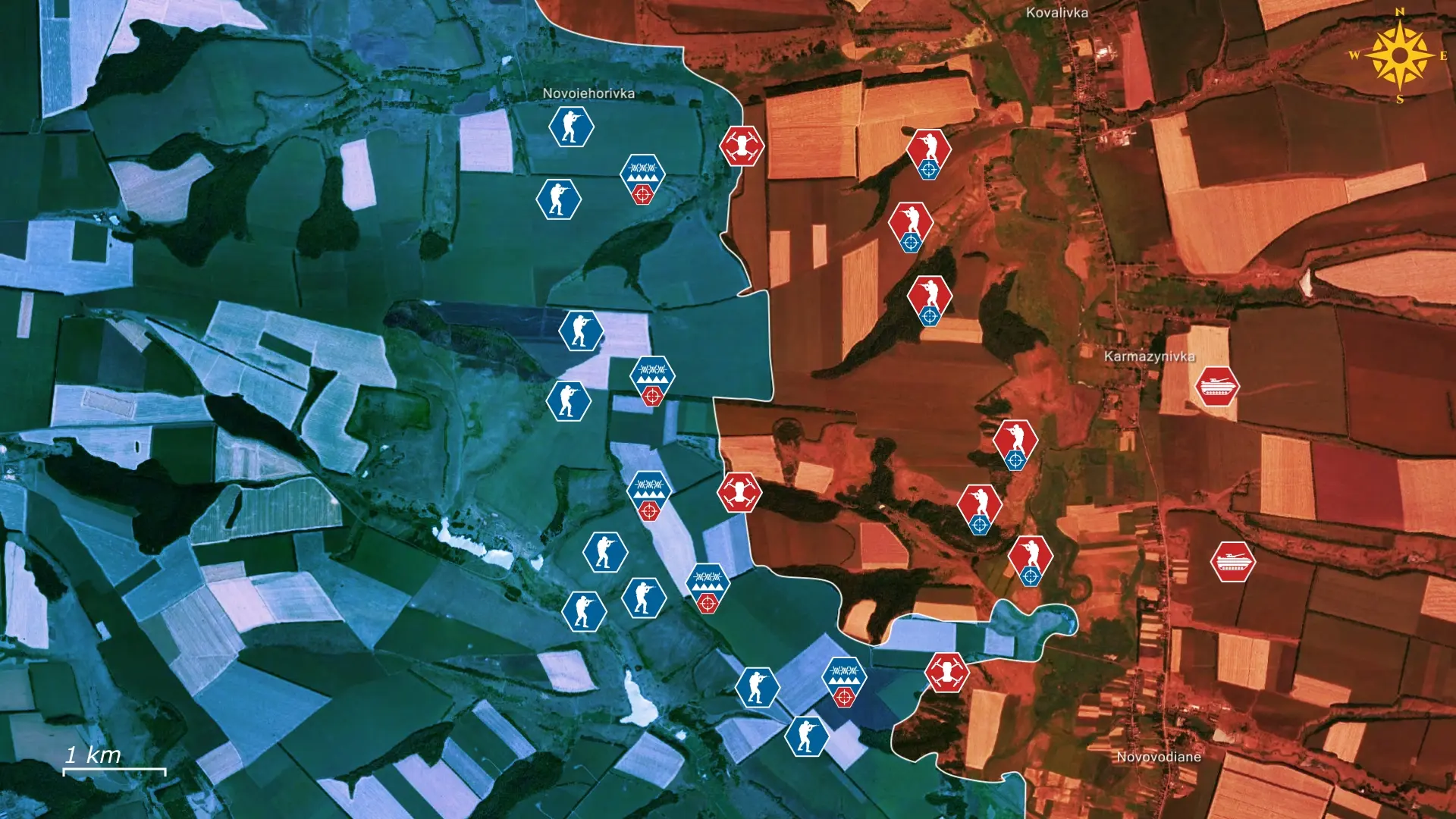 Les positions défensives restent essentielles, car la surveillance aérienne constante rend tout mouvement exposé rapidement détectable et ciblable, obligeant les unités ukrainiennes à vivre et à combattre sous terre pendant de longues périodes. Les drones de reconnaissance russes, tels que les Orlan-10 et Zala, assurent une surveillance persistante, et les rapports de Rusi montrent que les forces ukrainiennes observent bien plus de mille vols de reconnaissance de UAV par jour sur certaines parties du front. Les bombes guidées larguées par l’aviation sont devenues un autre facteur dominant de destruction, l’aviation ukrainienne estimant que la Russie a largué plus de cinquante mille bombes guidées depuis le début de l’invasion à grande échelle. Ces armes sont souvent utilisées pour effondrer les systèmes de tranchées et forcer les défenseurs à abandonner leurs positions.