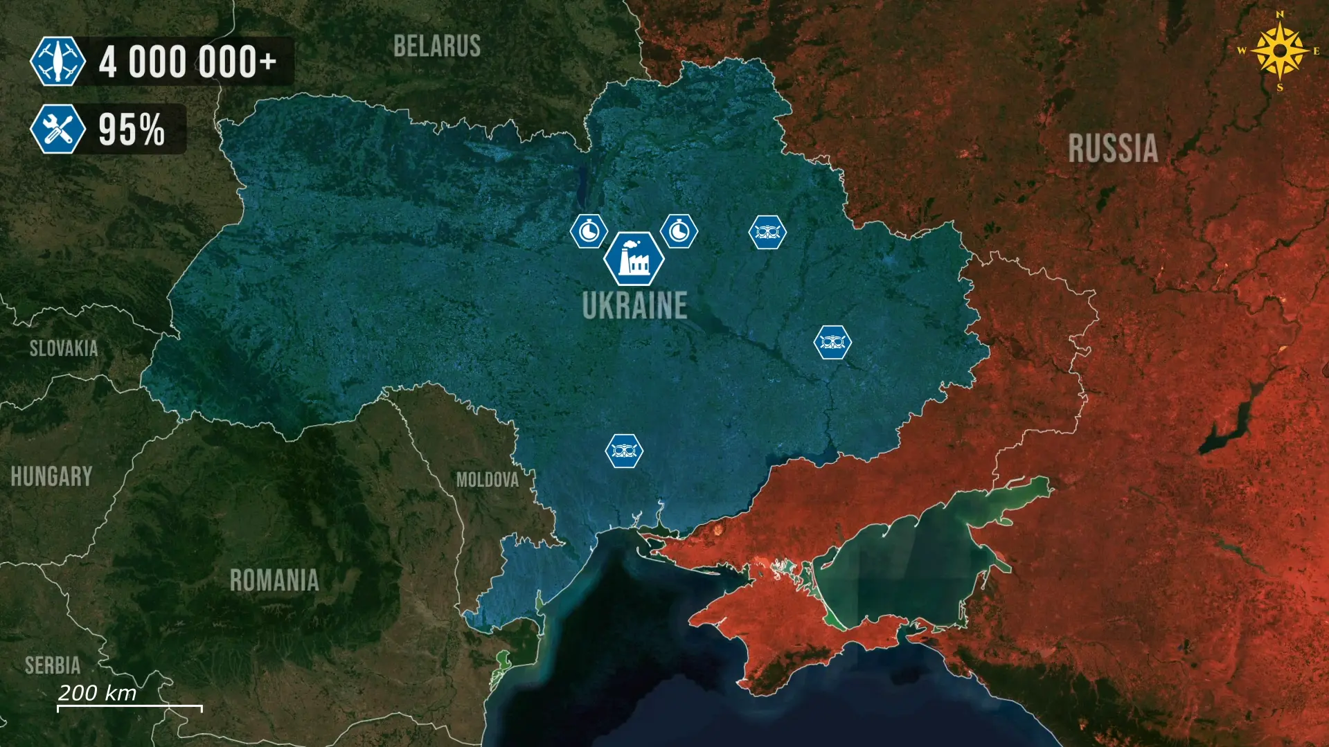 Pendant la guerre, l'Ukraine a fait passer sa production de drones de quelques milliers d'unités à des millions par an, tout en nationalisant plus de quatre-vingt-quinze pour cent de la production. Plus important encore, les ingénieurs ukrainiens peuvent passer du retour d'expérience du front à une version révisée en une semaine environ, conférant à l'Ukraine un avantage stratégique dans une guerre d'usure.