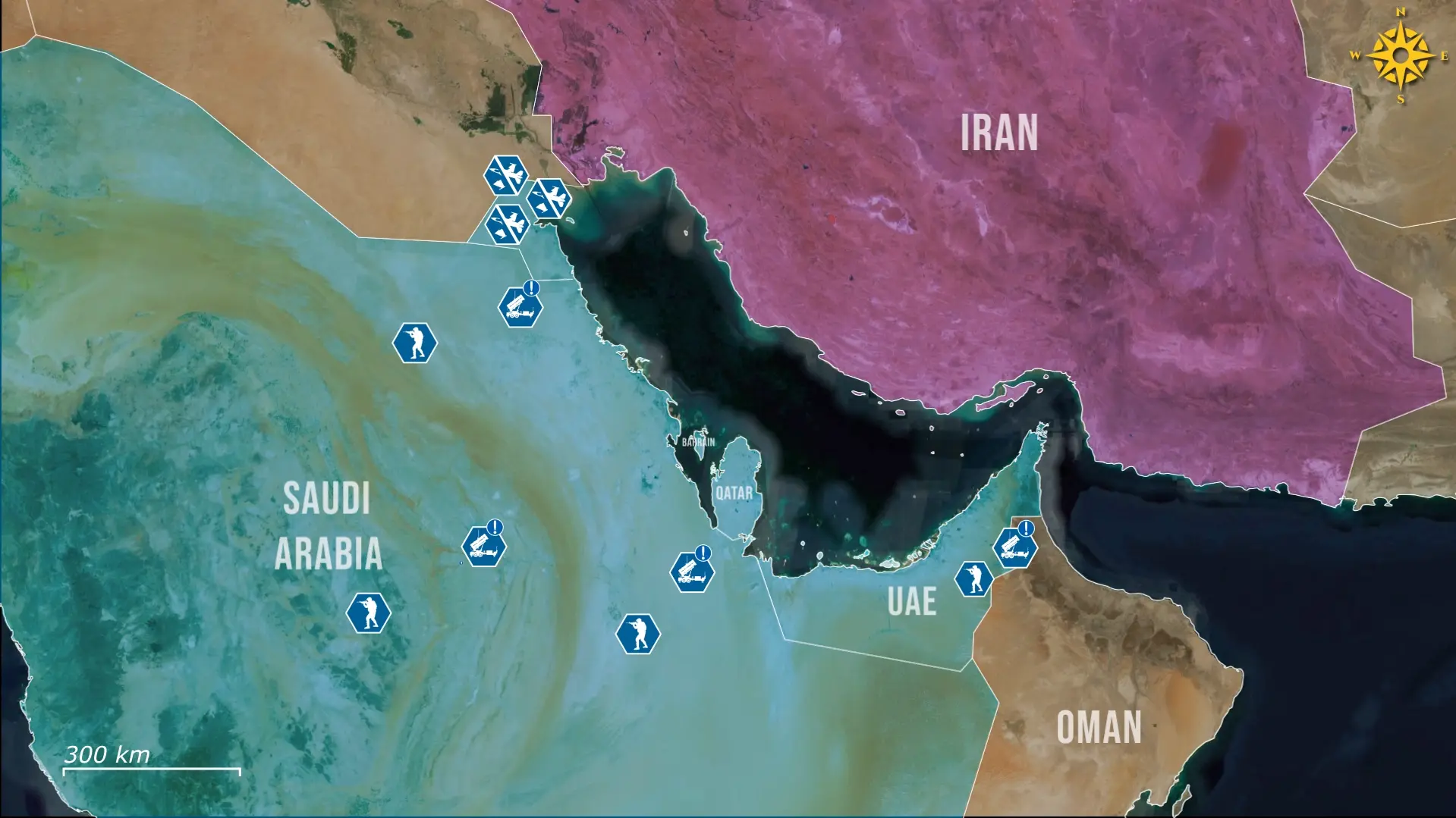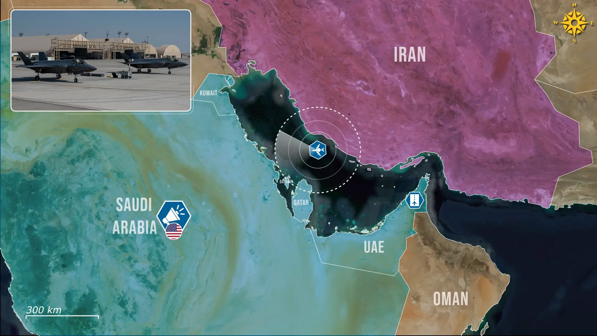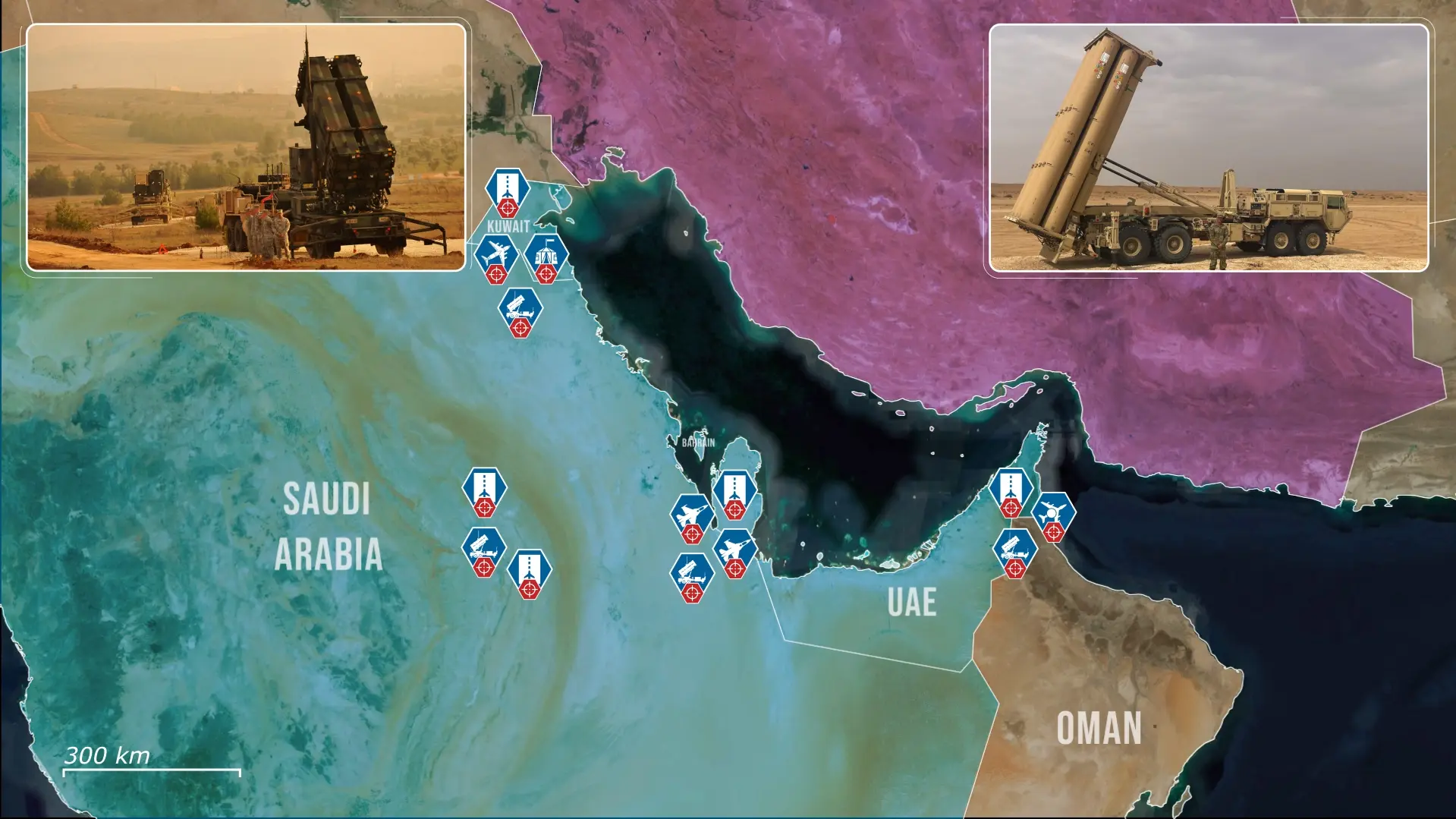 Nonostante le vaste capacità, queste basi disponevano di difese dedicate limitate contro la minaccia dei droni iraniani, poiché i sistemi di protezione primari, come le batterie Patriot e THAAD, sono ottimizzati per l'intercettazione di missili piuttosto che per piccoli sistemi aerei a pilotaggio remoto. Ciò le ha rese vulnerabili nei primi giorni del conflitto, rendendo necessario il know-how ucraino.