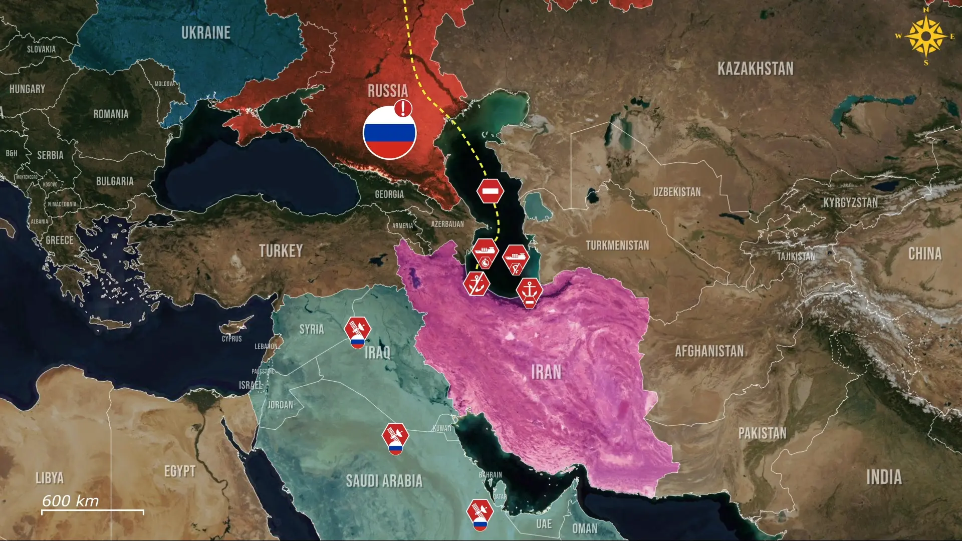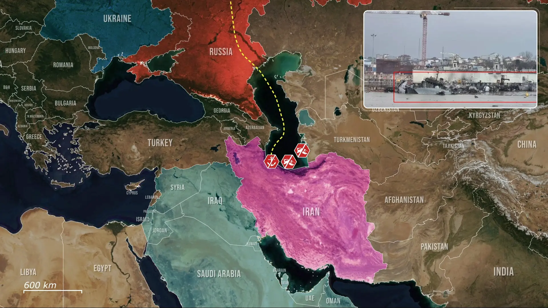 L'attacco complica il sostegno all'Iran poiché la rotta del Caspio consente alle navi di disattivare i sistemi di tracciamento per trasferire petrolio, materie prime, beni a duplice uso e armi.