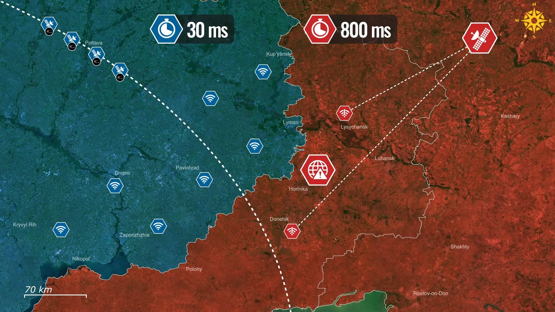 Nadat de Russische strijdkrachten in februari 2026 de toegang tot Starlink binnen Oekraïne verloren, beschikken zij nog steeds niet over een gelijkwaardig systeem, een tekort dat elk aspect van hun prestaties op het slagveld beïnvloedt. Hun eerste uitwijkmogelijkheid was het vertrouwen op oudere geostationaire satellietterminals, maar deze systemen zijn traag in gebruik te nemen, gemakkelijk te detecteren en worden regelmatig vernietigd door Oekraïense drones.
