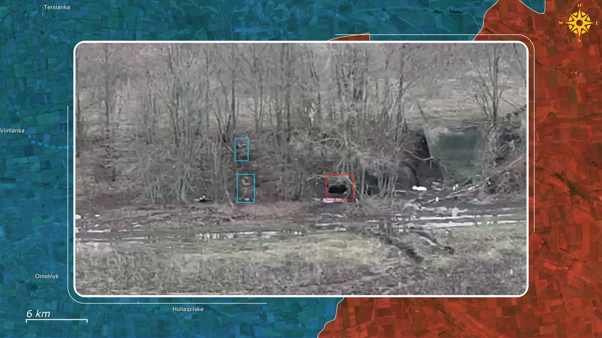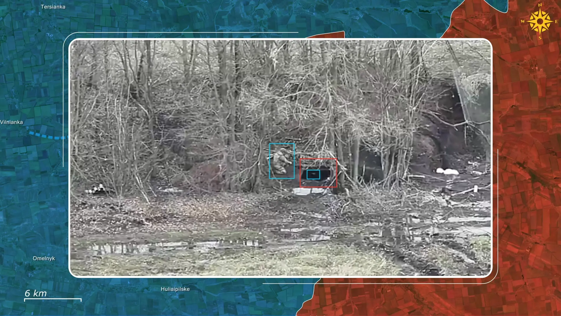 Tijdens het zuiveren van een boomgrens ontdekte de Oekraïense infanterie restanten van een Russische eenheid die schuilde in een schuilplaats. Meerdere oproepen tot overgave bleven onbeantwoord. Na beoordeling van de situatie werden Oekraïense FPV-drones ingeschakeld, die een precisieaanval op de positie uitvoerden. Na de explosie kwam een Russische soldaat uit de schuilplaats tevoorschijn en gaf zich over, waarna hij als krijgsgevangene werd afgevoerd.
