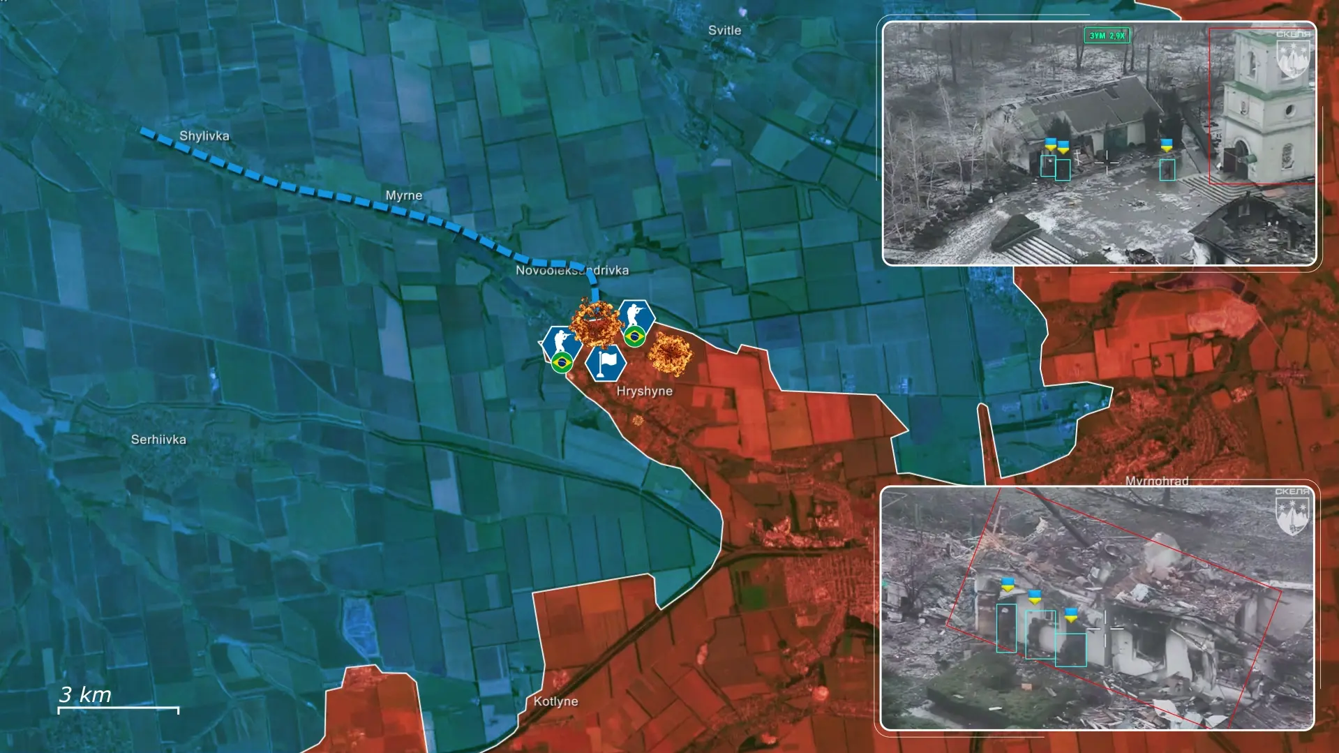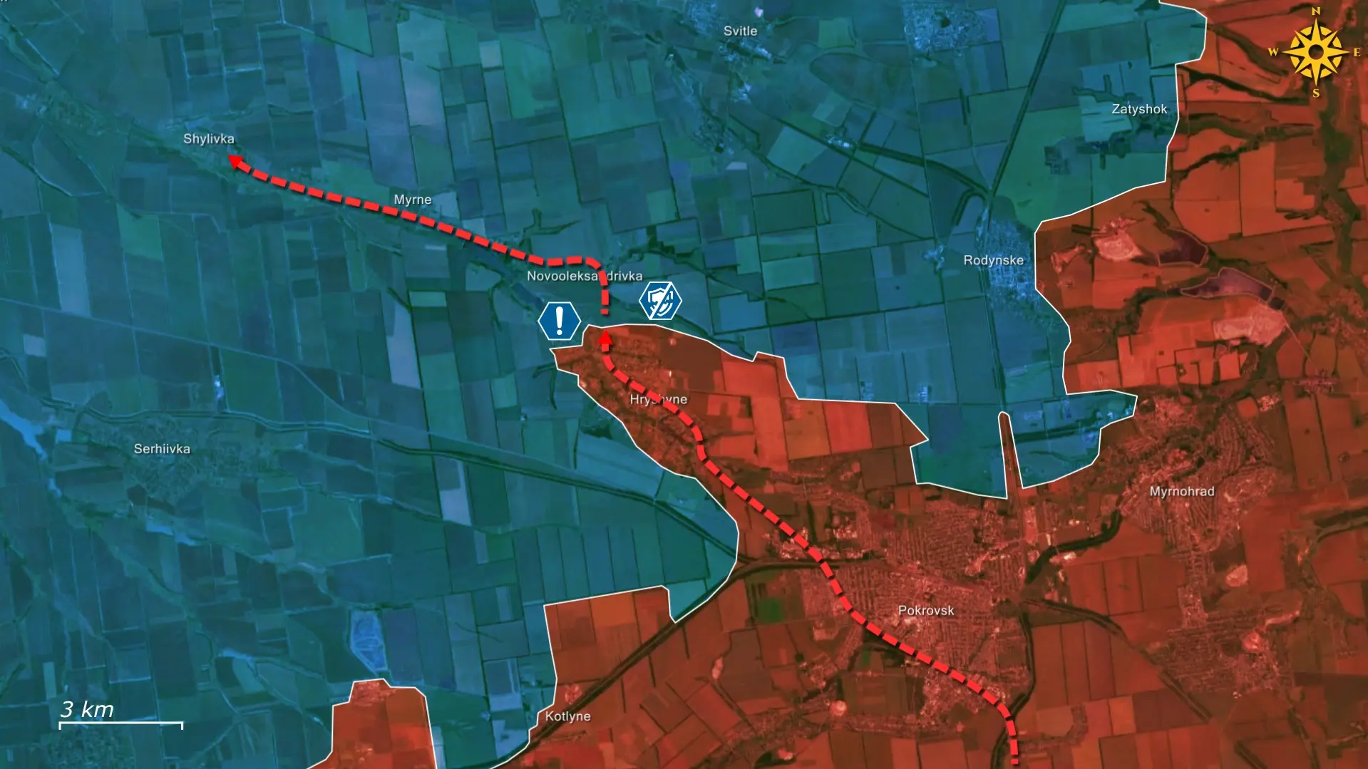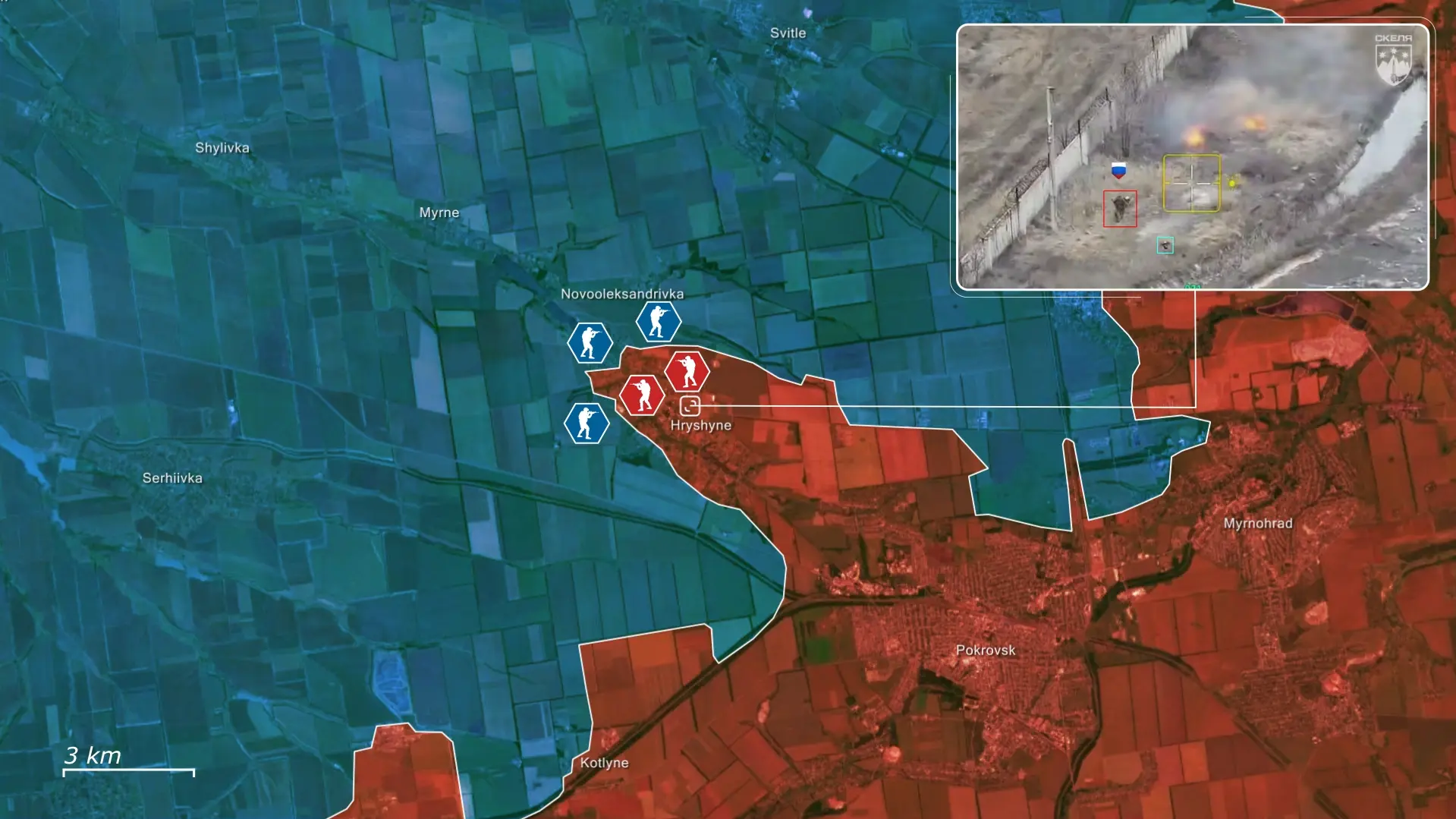 Het Russische plan is om op te rukken van Hryshyne naar Shylivka en verder, via de snelweg naar Pavlohrad. De Oekraïners moeten de volledige inname van Hryshyne voorkomen, omdat een Russische doorbraak de bredere Pokrovsk-as zou kunnen destabiliseren en als springplank zou kunnen dienen voor een aanval naar het westen.