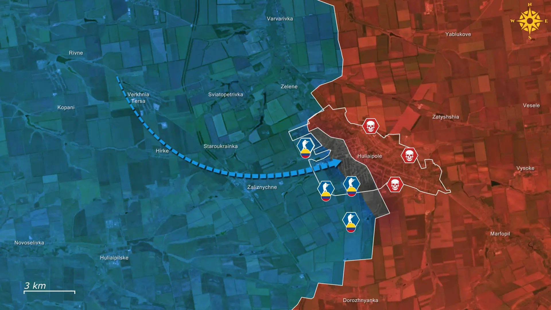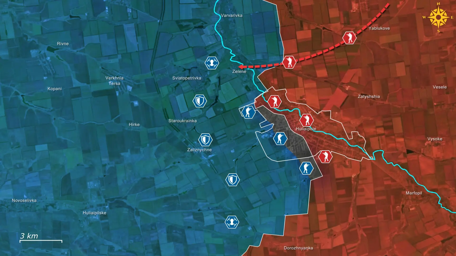Felle stedelijke gevechten gaan door binnen de stad, waarbij ongeveer 25% nog in de grijze zone ligt. Terwijl de Russen binnenshuis op afstand worden gehouden, proberen hun troepen ook een omsingelende aanval ten noorden van Huliaipole richting de Haichur-rivier in het westen uit te voeren om de verdediging van de stad te omkaderen.