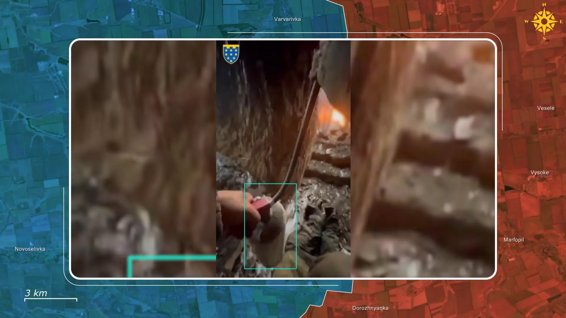 Beide Russische soldaten drongen de Oekraïense loopgraaf binnen, maar de Colombiaanse strijder wachtte op hen, verscholen in het donker en ondersteund door een drone. Toen de Russen de loopgraaf binnengingen, liepen ze in een val en werden vervolgens uitgeschakeld in een vuurgevecht van dichtbij.