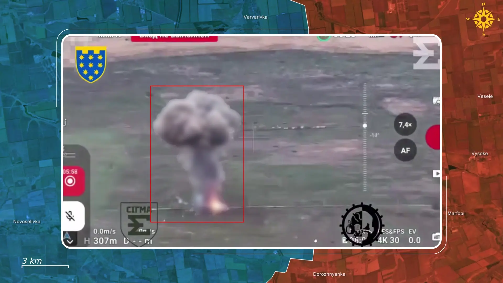 Het derde element in het Oekraïense verdedigingsplan is het aanvallen van Russische logistieke netwerken om de toevoer naar frontlinietroepen te verstoren. Beeldmateriaal van de 108e Brigade Territoriale Verdediging toont een Oekraïense FPV-drone die een Russisch onbemand grondvoertuig vol munitie raakt, wat een grote secundaire explosie veroorzaakt. Dergelijke aanvallen ondermijnen systematisch het vermogen van Rusland om vervolgoperaties te ondersteunen en troepen van munitie, explosieven of andere benodigdheden te voorzien.