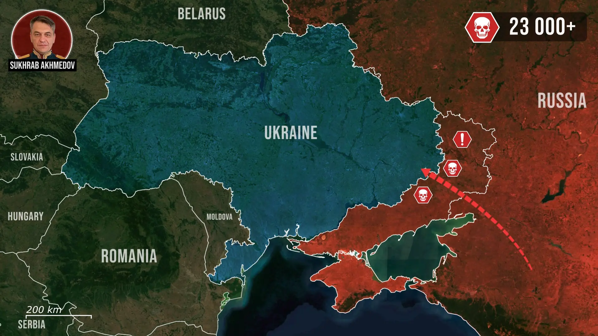 Choć początkowo udało się uzyskać płytkie wdarcie, ukraińskie kontrataki szybko rozbiły spójność rosyjskich działań, zmuszając jednostki do improwizowanej obrony. W drugiej fazie Achmedow próbował utrzymać te odsłonięte przyczółki mimo braku zabezpieczonej logistyki. Ukraińskie drony i artyleria systematycznie niszczyły pozostały sprzęt pancerny, a bomby szybujące i uderzenia dalekiego zasięgu uniemożliwiały konsolidację