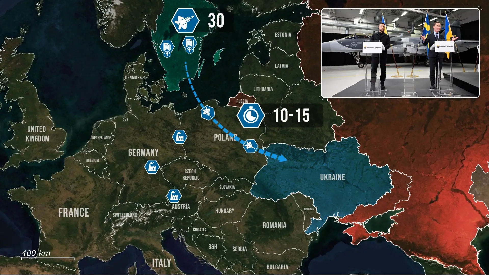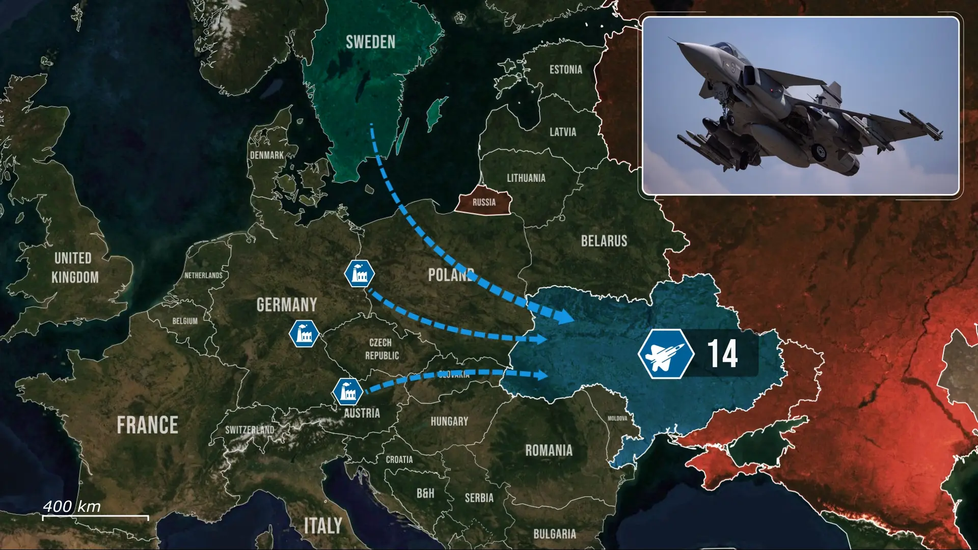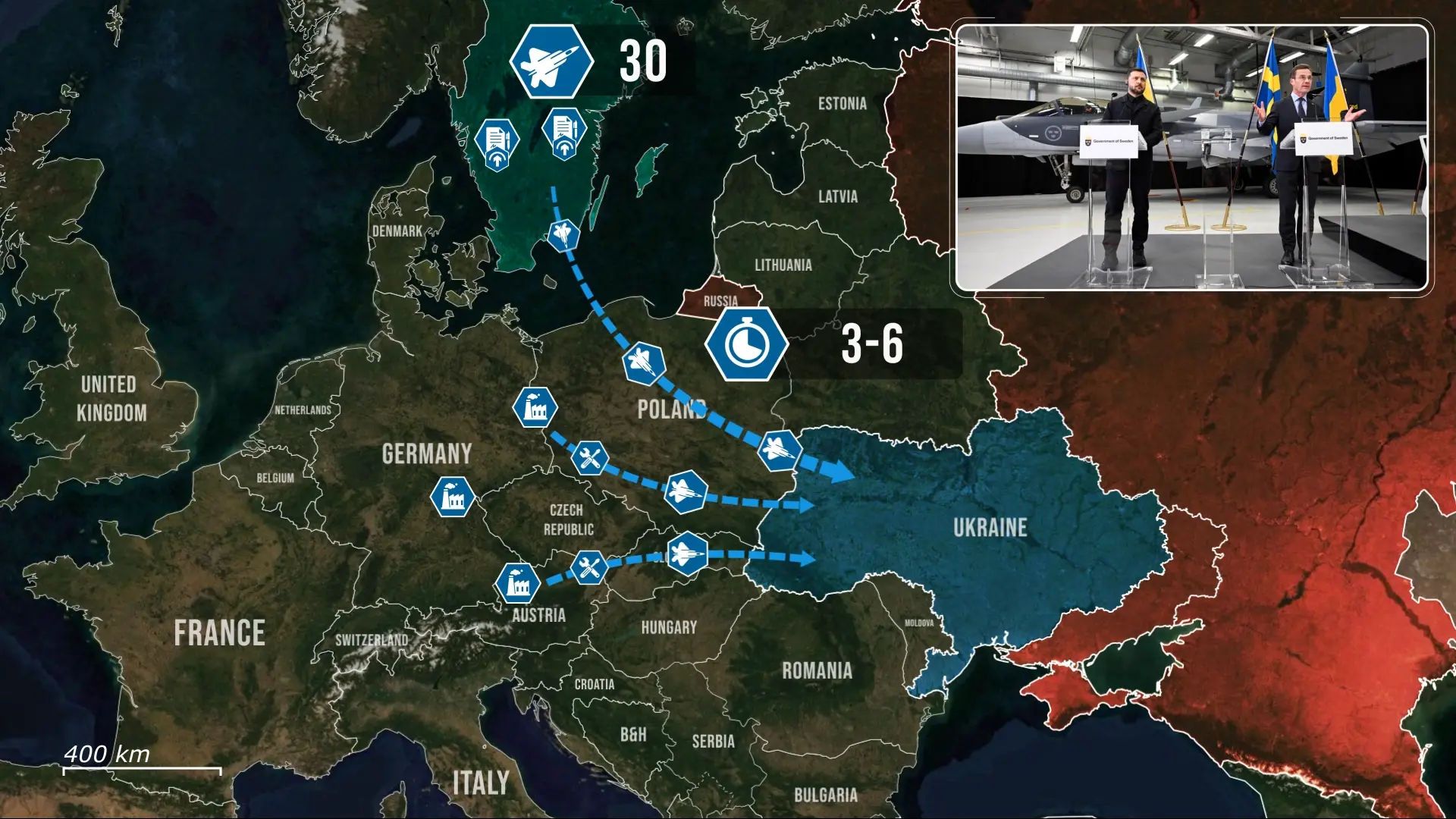 Biorąc pod uwagę czas potrzebny na produkcję Gripen E, Szwecja rozważa również tymczasowe udostępnienie Ukrainie istniejących myśliwców Gripen CD, wysyłając już części zamienne dla 14 maszyn, co wyraźnie wskazuje na przygotowania do przyszłego transferu.