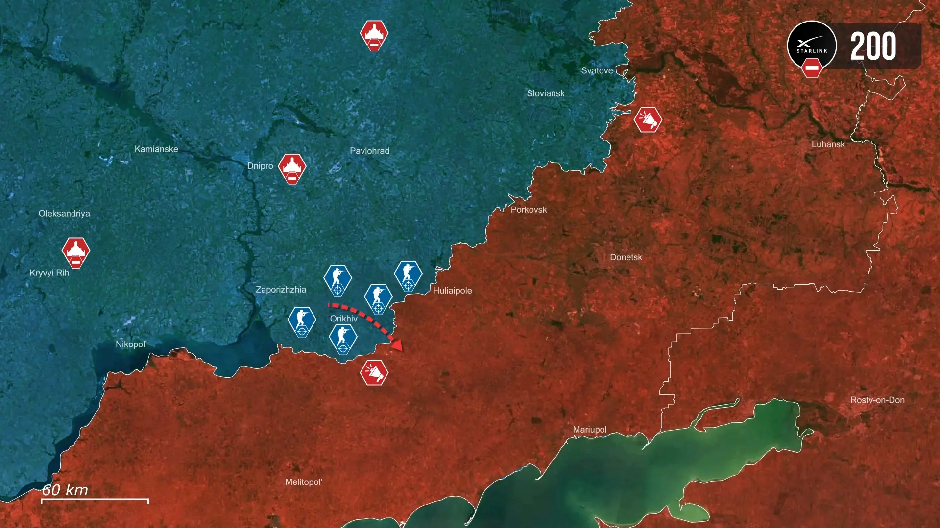 Z kolei według relacji dowódcy z ukraińskiego 3. Korpusu Armijnego, stosunek strat własnych do przeciwnika wynosił wcześniej około jeden do ośmiu na korzyść Ukrainy. Jednak po odcięciu łączności Starlink wskaźnik ten wzrósł do około jeden do trzynastu. Stało się to wynikiem znacznych trudności w wykrywaniu precyzyjnych ukraińskich stanowisk ogniowych oraz przekazywaniu danych celowniczych do systemów wsparcia ogniowego, których liczebność spadła, gdyż wiele systemów uderzeniowych opartych na dronach stało się niezdatnych do użytku.