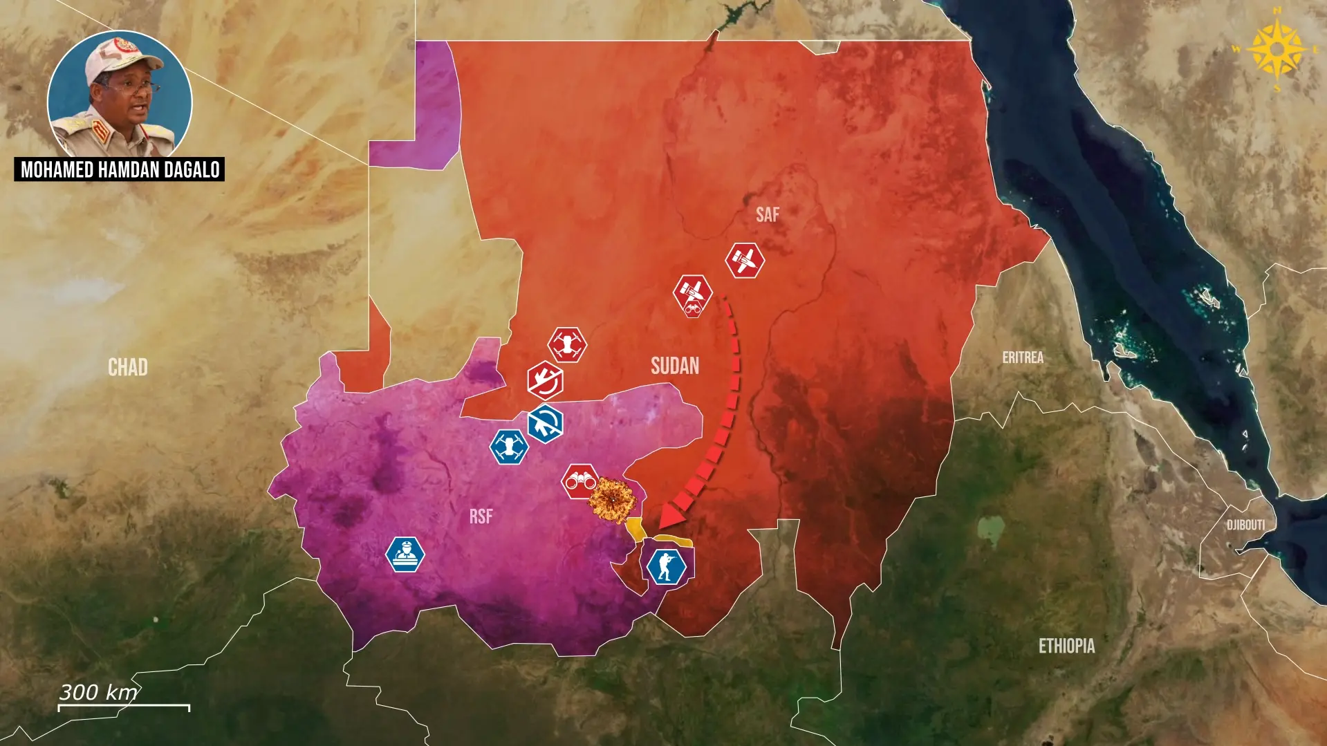 Jednak sudańska wojna dronów wykracza obecnie daleko poza starcia na linii frontu. Rząd Sudanu oskarżył Etiopię o wspieranie działań RSF poprzez umożliwienie startów dronom dalekiego zasięgu uderzającym w bazy lotnicze SAF, co zwiększa presję na i tak już przeciążoną logistykę, podobnie jak ma to miejsce na Ukrainie. Z kolei Egipt wsparł SAF transgranicznymi uderzeniami dronów na pozycje RSF. Bezzałogowce są również wykorzystywane do eliminacji kluczowych postaci, co pokazały wcześniejsze ataki SAF, w których zginął starszy doradca dowódcy RSF.
