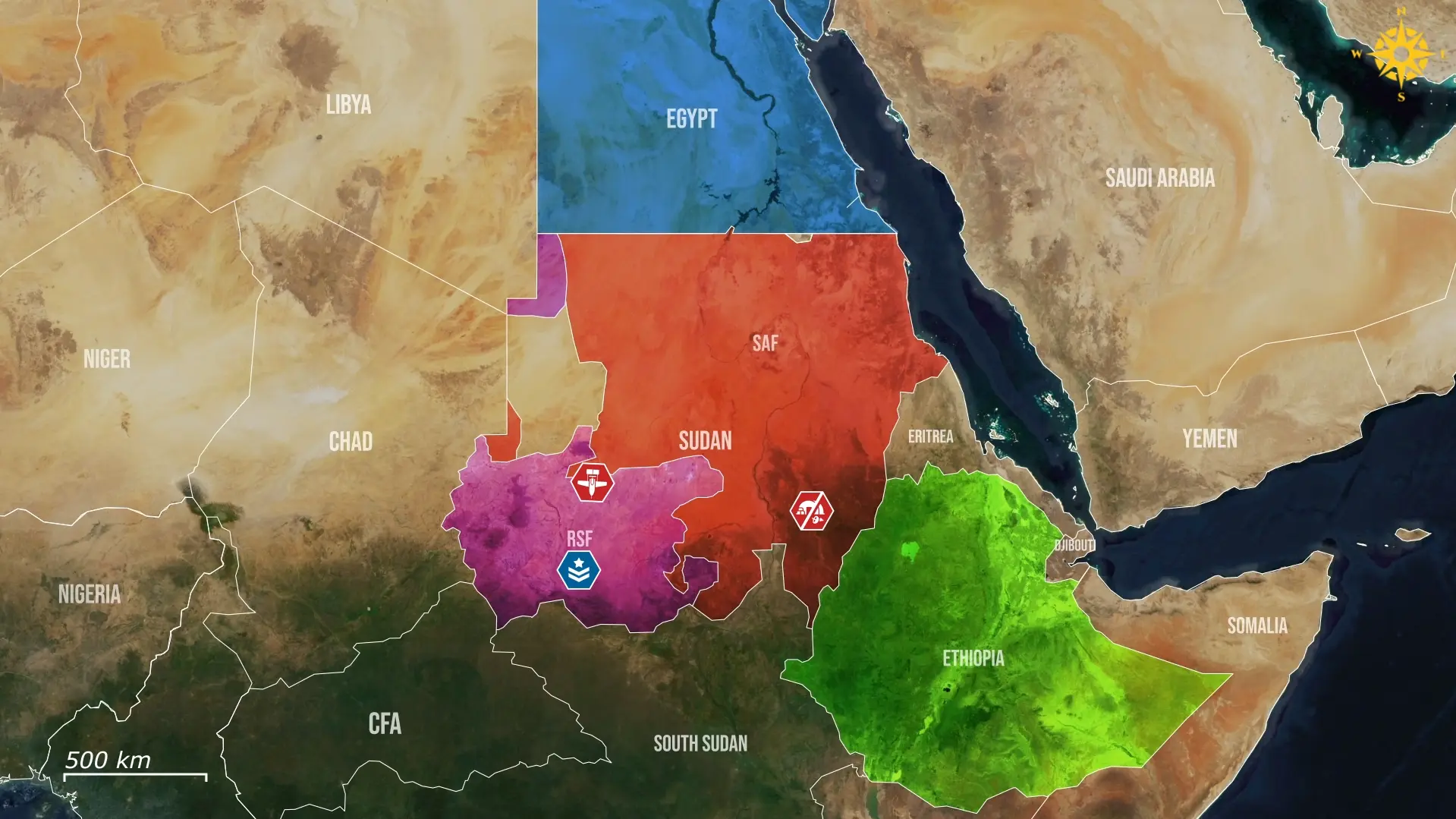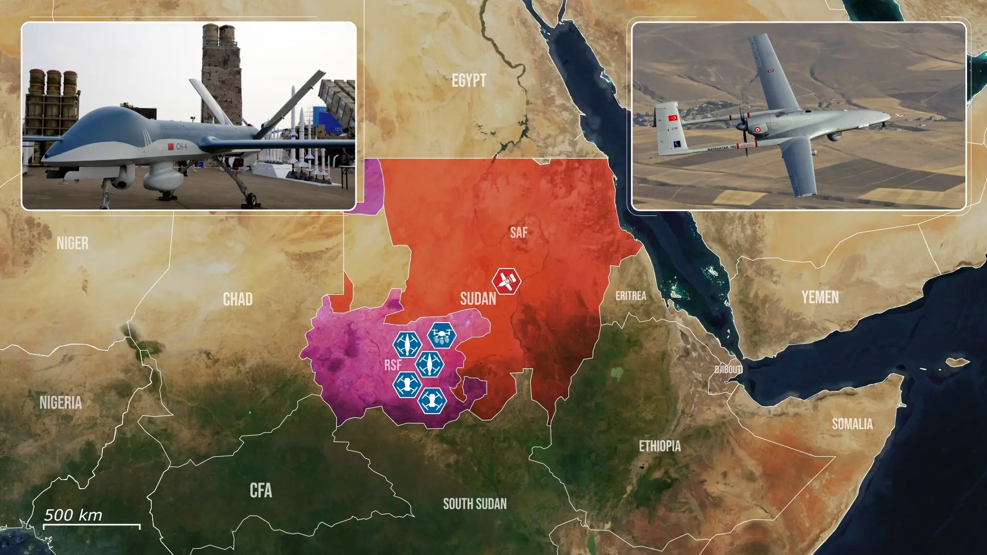 Rozwój ten był możliwy dzięki zewnętrznym sieciom wsparcia: Turcja i Rosja zaopatrują SAF, podczas gdy RSF otrzymuje sprzęt przez korytarze logistyczne z sąsiedniej Libii i Czadu. Dostawy te normalizują wykorzystanie dronów w całym konflikcie, zwiększając częstotliwość i zasięg geograficzny uderzeń.